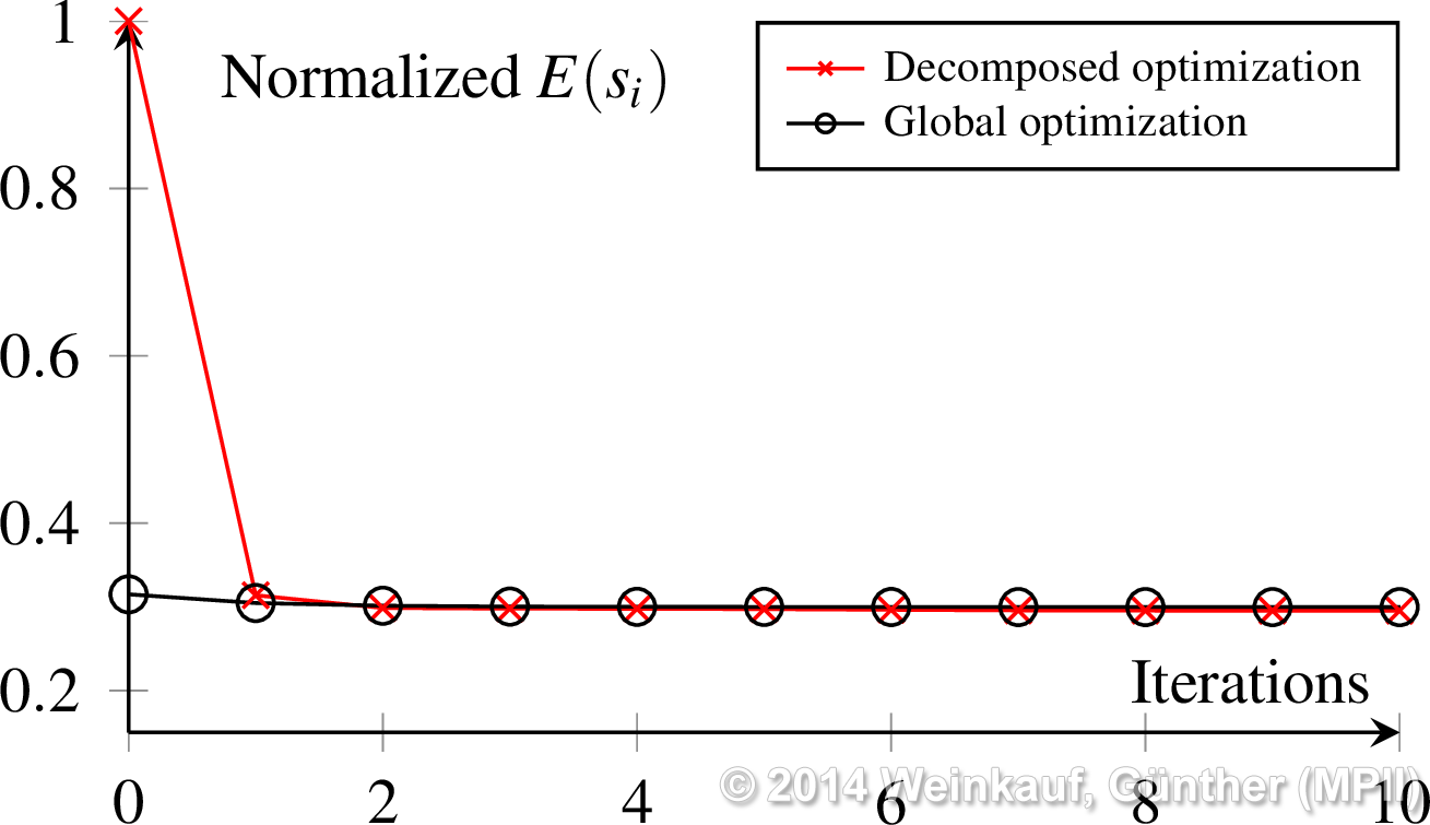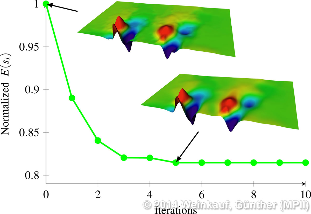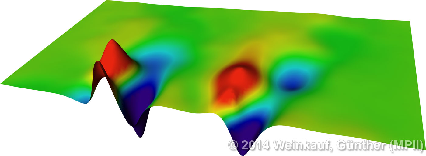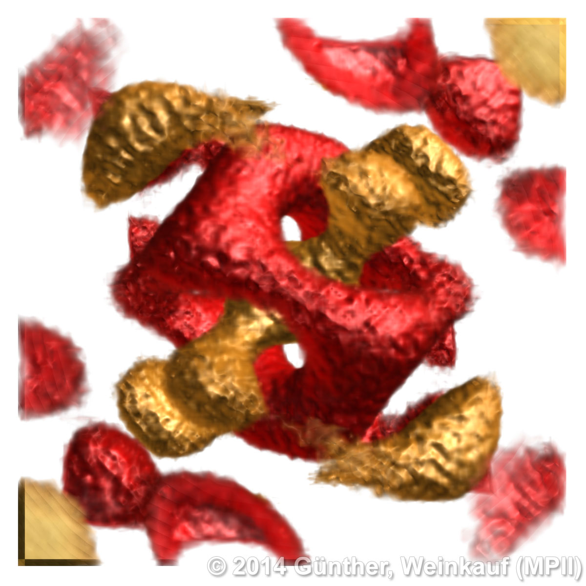 Data acquisition, numerical inaccuracies, and sampling often introduce noise in measurements and simulations. Removing this noise is often necessary for efficient analysis and visualization of this data, yet many denoising techniques change the minima and maxima of a scalar field. For example, the extrema can appear or disappear, spatially move, and change their value. This can lead to wrong interpretations of the data, e.g., when the maximum temperature over an area is falsely reported being a few degrees cooler because the denoising method is unaware of these features. Recently, a topological denoising technique based on a global energy optimization was proposed, which allows the topology-controlled denoising of 2D scalar fields. While this method preserves the minima and maxima, it is constrained by the size of the data. We extend this work to large 2D data and medium-sized 3D data by introducing a novel domain decomposition approach. It allows processing small patches of the domain independently while still avoiding the introduction of new critical points. Furthermore, we propose an iterative refinement of the solution, which decreases the optimization energy compared to the previous approach and therefore gives smoother results that are closer to the input. We illustrate our technique on synthetic and real-world 2D and 3D data sets that highlight potential applications. | Fast and Memory-Efficient Topological Denoising of 2D and 3D Scalar Fields IEEE Transactions on Visualization and Computer Graphics (Proc. IEEE VIS) 20(12), December 2014 |