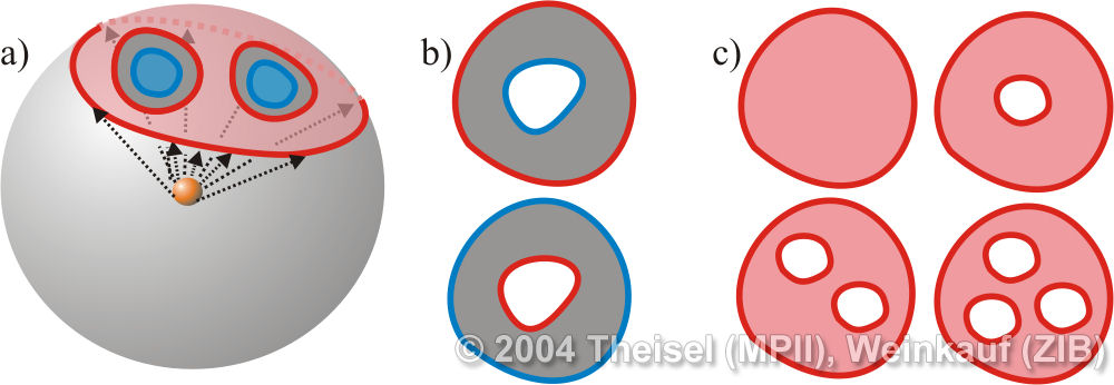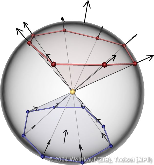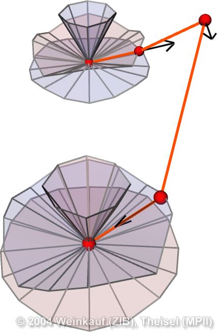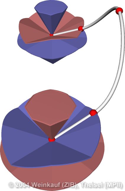We present the first algorithm for constructing 3D vector fields based on their topological skeleton. The skeleton itself is modeled by interactively moving a number of control polygons. Then a piecewise linear vector field is automatically constructed which has the same topological skeleton as modeled before. This approach is based on a complete segmentation of the areas around critical points into sectors of different flow behavior. Based on this, we present the first approach to visualizing higher order critical points of 3D vector fields. | Topological Construction and Visualization of Higher Order 3D Vector Fields Computer Graphics Forum (Proc. Eurographics) 23(3), September 2004 |