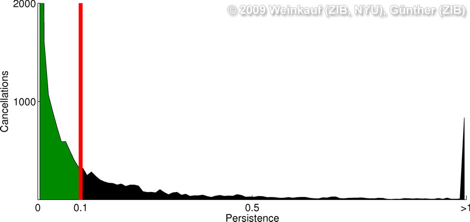 | Separatrix Persistence: Extraction of Salient Edges on Surfaces Using Topological Methods | Corresponding Publication | |